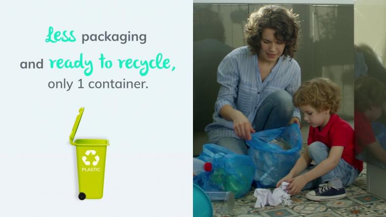 - La nouvelle bouteille est 100% PET et peut être mise directement dans le conteneur de recyclage des emballages en plastique.